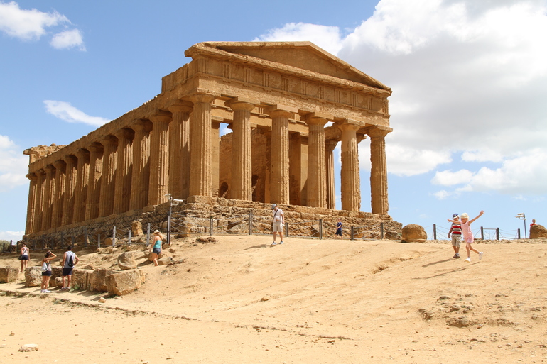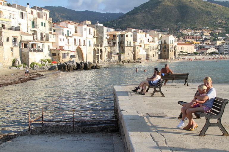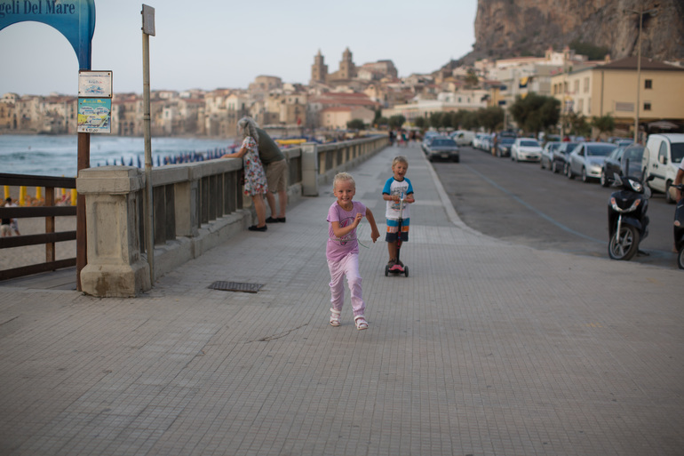 Если вы будете читать про Чефалу (отправную точку наших перемещений), то там написано, что это идеальное место для осмотра достопримечательностей Сицилии. Лично я думаю, что они слегка лукавят, посколькуСицилия-это равнобедренный треугольник. И она, однако, оказалась больше, чем я ожидала. в наиболее отдаленные от нас точки - Агридженто и Таормину приходилось ехать по 200 км в каждую сторону. и того туда-обратно 400 за день, что довольно утомительно с двумя маленькими детьми и имеет свои особенности в виде большой сумки с одеждой, детским питанием, памперсами и всем необходимым. Скажу честно, мы больше замучились, чем получили удовольствие от увиденного. Если с пятилетним ребенком такой формат еще куда ни шло, то с годовалым-ни в какие ворота. Признаю, это была моя ошибка.