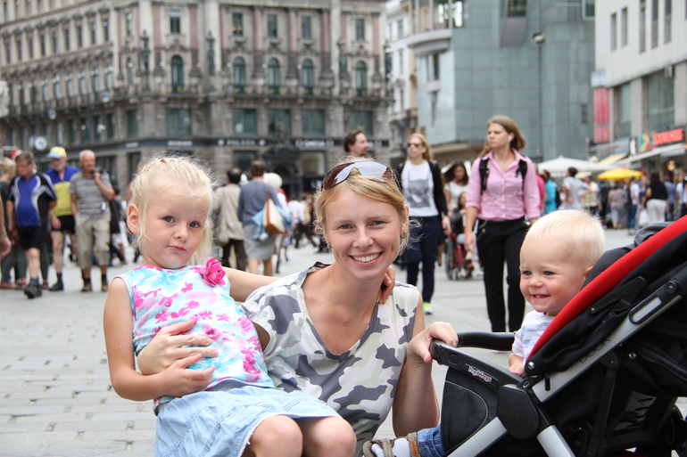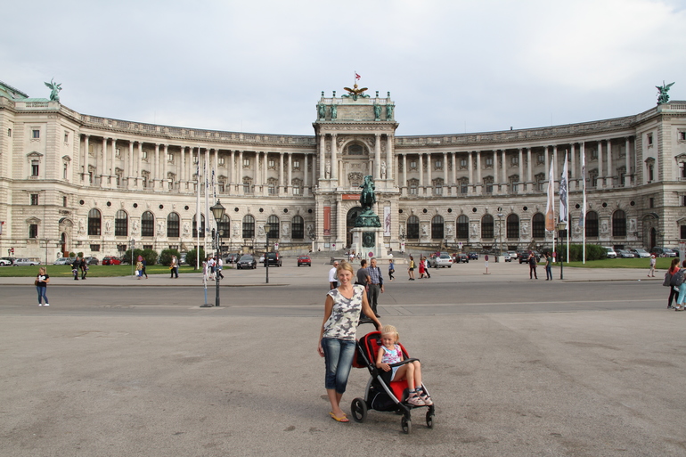 Весь первый день мы наслаждались прогулкой по историческому центру города. Вика стойко вынесла на ногах почти всю прогулку ( Под вечер пришлось потеснить Степку и посадить ее в коляску. И эта порочная практика сопровождала нас все дальнейшее путешествие) Пару слов про нашу коляску Пег Перего Бук- оптимальный для путешествия вариант: легкая, компактная в сложенном виде, при этом просторная, проходимая и управляемая. Степа был вполне сносен, много спал, хорошо себя вел. Посетили Собор Святого Стефана, музей на дворцовой площади.