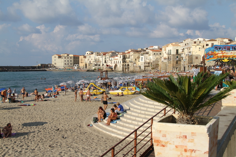 Зато кишмя туристов в Таормине, куда мы изначально хотели поехать и слава Богу, передумали, правда из ценовых соображений. Аренда жилья там дороже раза в полтора-два. Курорт судя по всему повыше уровнем и для другого достатка. Сама Таормина городок туристический, народу-не протолкнуться, пляжи забиты людьми.