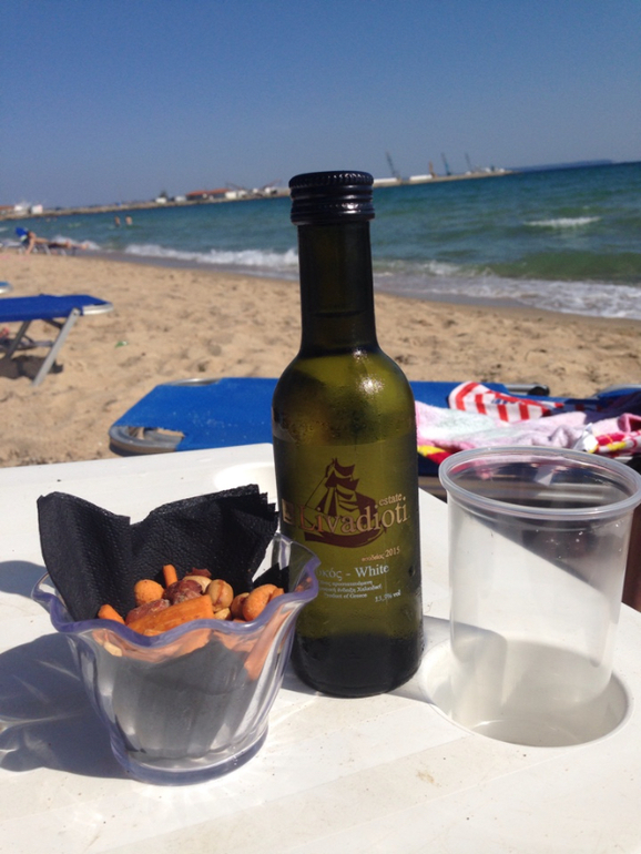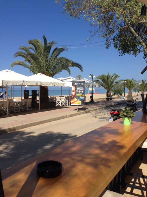 Ходили пешком вдоль моря в соседнюю деревню Дионисиос. 30 минут. Там же поужинали в кафе на пляже - изумительно. Поселок совсем практически безлюдный - красота. Но июль-август, конечно народу гораздо больше.