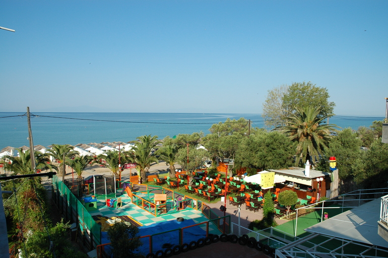 Городок сам маленький, апартаменты находятся в стороне от центра. До центра городка пешком 10-15 минут. Там же основные кафе, бары, рестораны, небольшая набережная, магазинчики. Городок милый, но немного заброшенный. Сказался греческий кризис. Если кто за греческой аутентичностью,то не сюда.