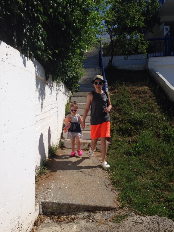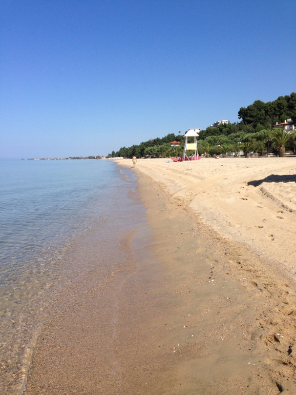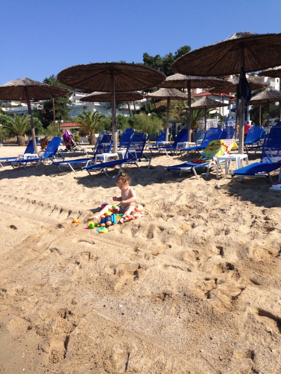 В соседнем городке Потидея, в отеле Потидея Палас отдыхали мои родители. И мы к ним ездили в гости - 10 минут на машине. Ну немного развлечься, мини диско ребенку показать, поужинать вместе семьёй. Первый раз мы приехали числа 28 мая, отель был практически пустой - очень хорошо провели день. Дети с дедушкой изучали морских ежей - рядом нашли колонию, плескались в бассейне, вкусно и весело поужинали. Детей практически не было. Еще не закончился учебный год. Второй раз приехали 10 июня - у них в отеле за 2 дня высадился десант из школьников всех возрастов...искупалась Ева один раз в бассейне....и всё((( Переболела правда легко, но три дня на море не ходили...хорошо, что к нам переехала моя мама на недельку после Потидеи и Пашке хоть компания была на пляже, да и я бегала покупаться и поваляться.... вот такая история)