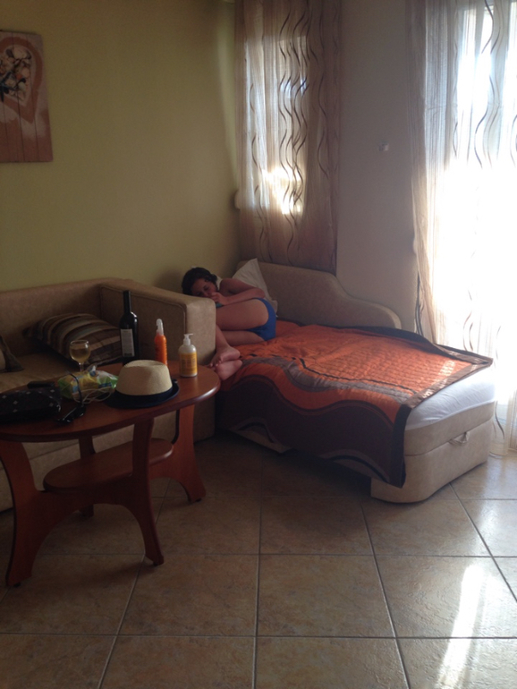 Еще немного удивило отсутствие одеял привычных нам, то есть одеяло, которое заправляется в пододеяльник. Укрываться предлагалось простыней и сверху покрывало. Но, я смотрела фото других апартаментов в Греции, почти во всех такая же картина. Но иногда в мае или при включенном кондее хотелось завернуться в теплое одеялко.