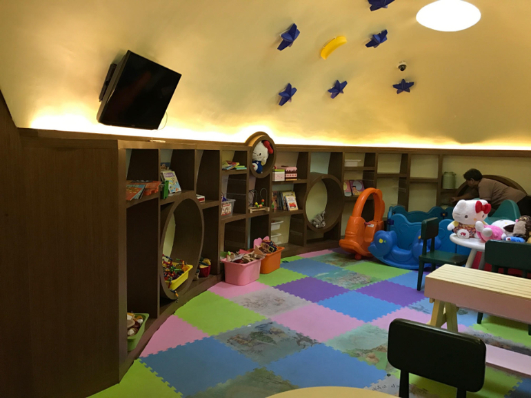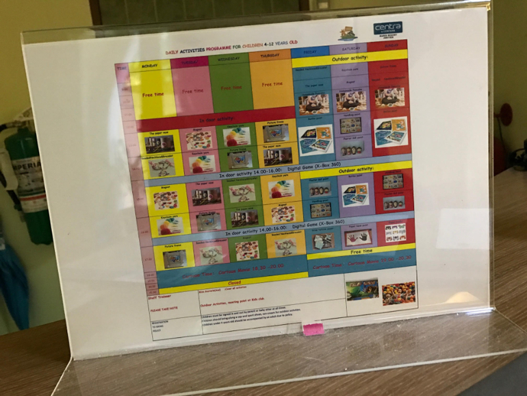 Наличие Мини-клуба на территории. Здесь вы найдёте и мягкие игрушки, и книги, и развивающие игрушки, и конструкторы, и телевизоры с мультами, и игровые приставки. В мини-клубе находится персонал, который осуществляет присмотр за детьми.