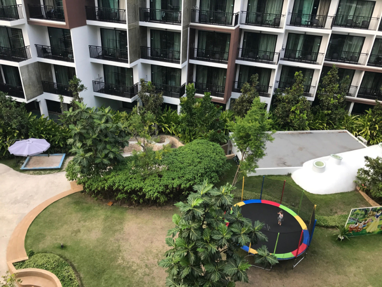 Внутрення территория отеля хоть и небольшая, но очень зелёная, спокойная и уютная. Все номера выходят во двор и по вечерам здесь тихо. Проблем со сном точно не будет!