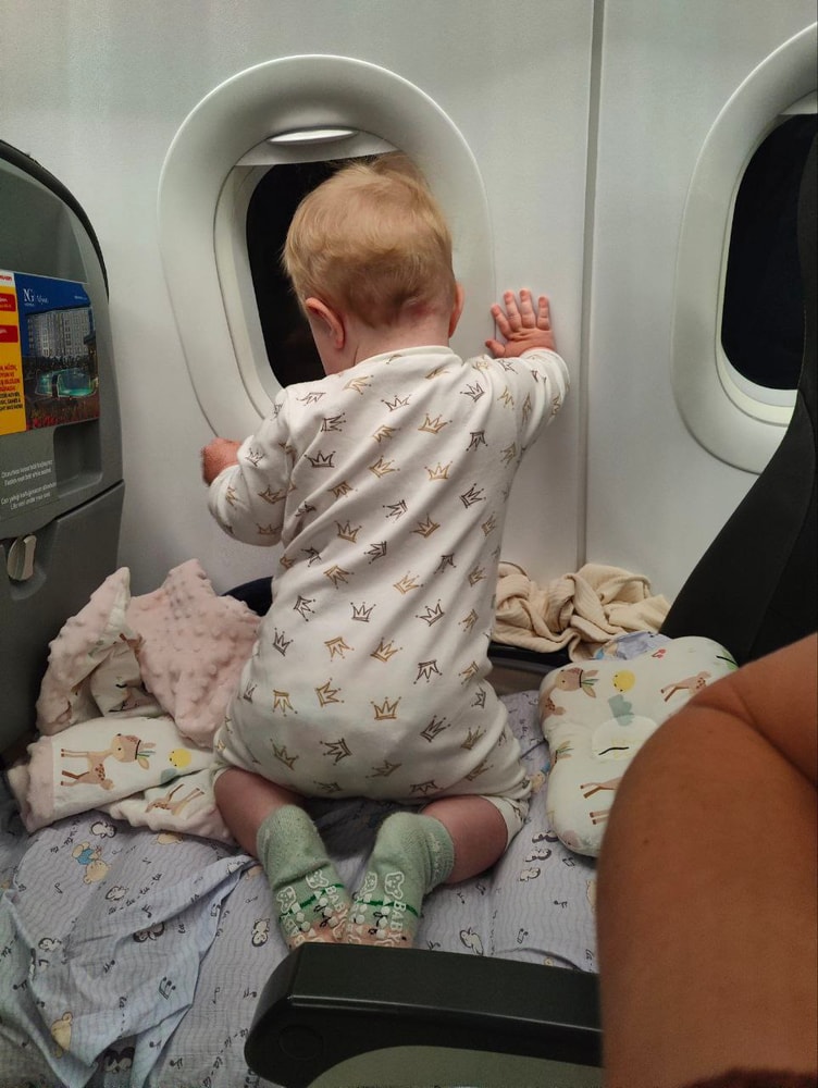 Расстелили простынку, поставили подушечку — Калерия дремала, как в люксе, а самолёт шуршал где-то на заднем фоне.Бизнес-зал в Касабланке?По легенде — есть. По отзывам — лучше не искать.Мы спокойно устроились в зоне еды, перекусили, Калерия в коляске отключилась в нужный момент — классика жанра.В Стамбуле — проверенный маршрут: бизнес-зал, перекус, сон.Эклерчик спокойно отсыпалась в коляске, завтрак у нас тоже был — традиции нарушать нельзя.Эклерчик с таким комфортом путешествует, что скоро сама начнёт учить других младенцев “Как вести себя на пересадках”.Утренний вылет в Питер задержали на час.Пока мы зевали и не понимали, что к чему, где-то в небе летали беспилотники, и аэропорты Москвы и Петербурга временно закрыли.Мы, как настоящие дзен-путешественники, узнали об этом уже по прилёту. А вот в рейсе Стамбул — Петербург случилась мини-драма… социальная.За нами сидела пара — мужчина и женщина.И Калерия решила: вот они — мои новые друзья!