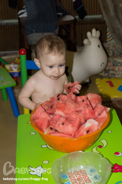 Сегодня слопали арбуз на 7 кг. Обожаю арбузы, нашла последние в магазине )) Теперь год ждать, эх.