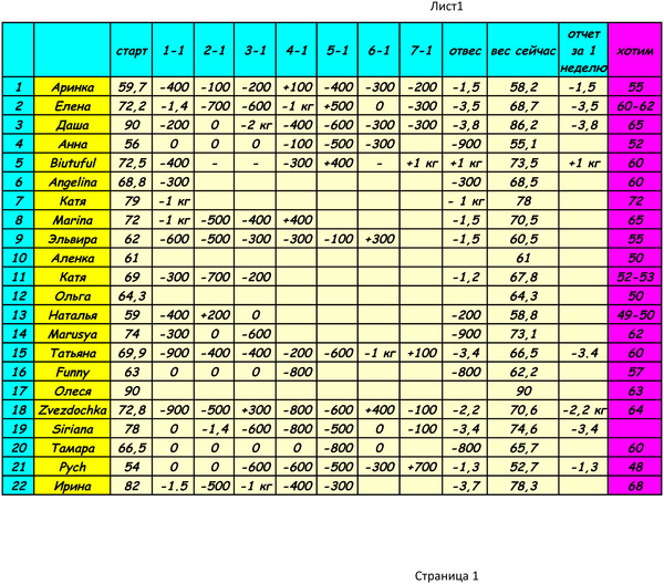Наши отчеты и результаты:)Девочки!!! Отчитываемся до 13:00!!!