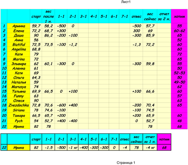Наши отчеты и результаты:)Девочки!!! Отчитываемся до 13:00!!!
