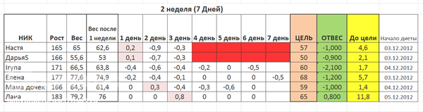 До конца дня ждем-с. Потом создаю таблицу 3 неделе, кто не отчитается за 2-ю, того, увы, не смогу перенести на 3-ю неделю.
