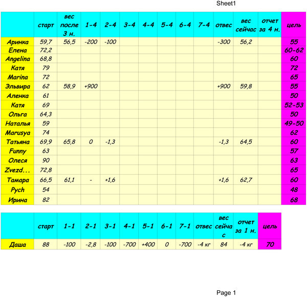 Наши отчеты и результаты:)Девочки!!! Отчитываемся до 13:00!!!