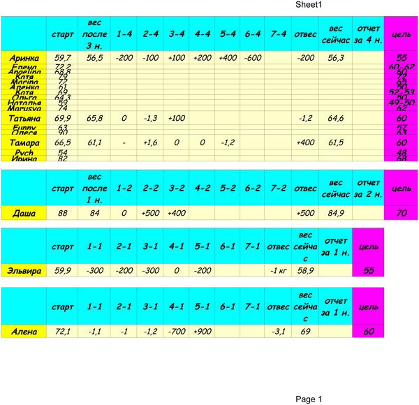 Наши отчеты и результаты:)Девочки!!! Отчитываемся до 13:00!!!