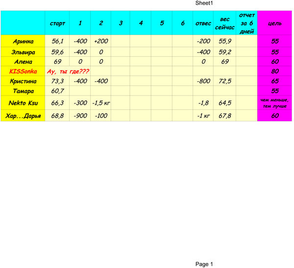 Наши отчеты и результаты:)Девочки!!! Отчитываемся до 13:00!!!