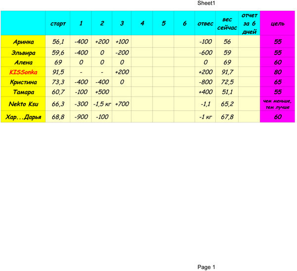 Наши отчеты и результаты:)Девочки!!! Отчитываемся до 13:00!!!