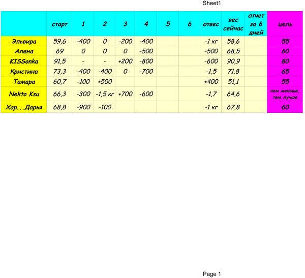 Наши отчеты и результаты:)Девочки!!! Отчитываемся до 13:00!!!