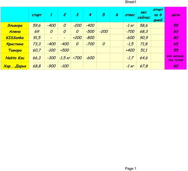 Наши отчеты и результаты:)Девочки!!! Отчитываемся до 13:00!!!