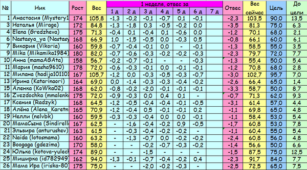Наши отчеты и результаты:)Поздравляю!!! Первая неделя позади!!!