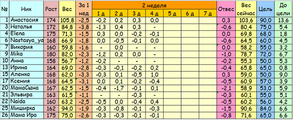 эта неделя всё верно,но вот на первой неделе Настя не занесла мне в пятый день -400((( Табл попрежнему не вижу....может сможешь на почту мне кидать,если не трудно....