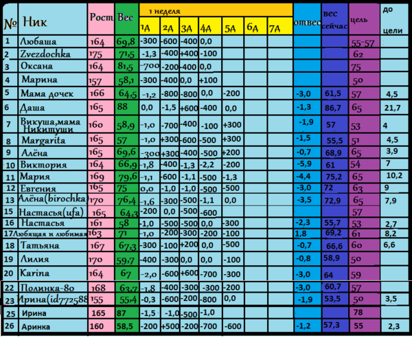 Наши отчеты и результаты:)Девушки, отчитываемся до 22:00,в 22:00 вставлю табличку!