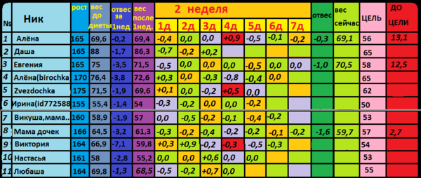 Табличку, сегодня тут вам вставлю с результатами 2-ух недель)