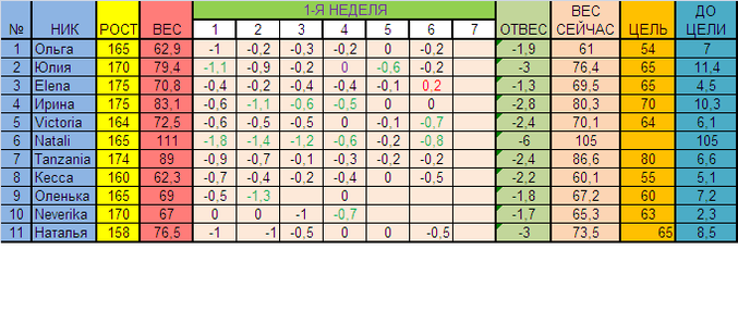 Девочки - худышки;)). Решила добавить немного цвета и отмечать зеленым цветом рекордсменов. Если не нравиться, верну как было.