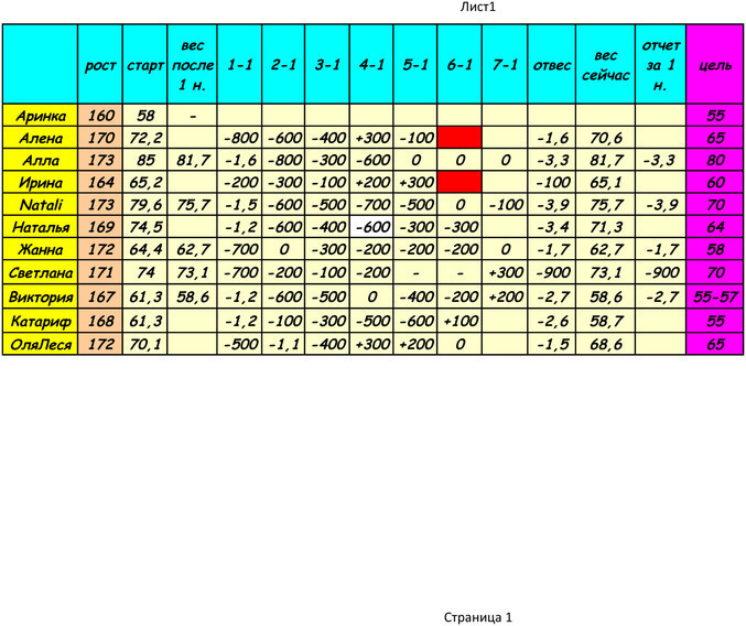всем привет! за выхи +300...итого 73,1. сегодня тоже кушаю по первой неделе как и аринка.