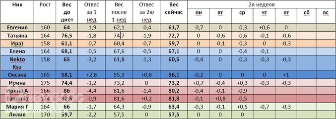 Алена ж сошла с диеты и черным по белому написала, есть ли желающие вести таблицу.