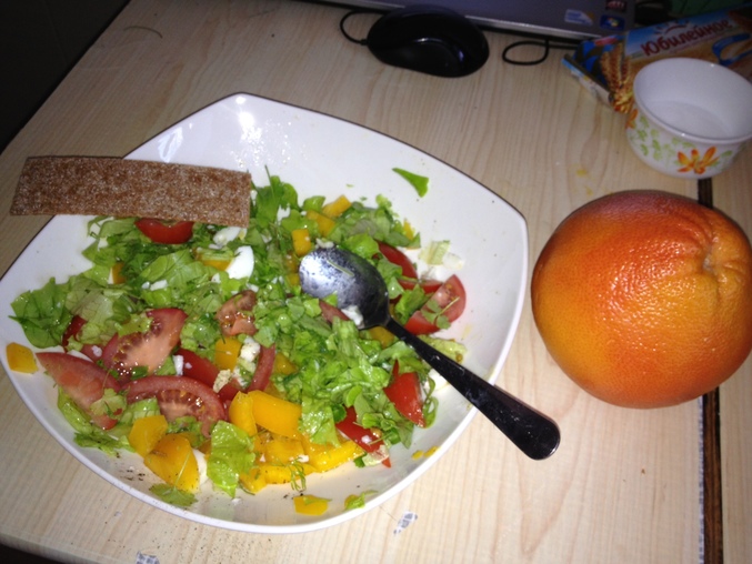У меня почти также) только тост из зернового хлеба, и салата белая дача "весенний микс" пол пачки) к огурчикам и помидоркам.