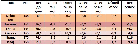 -500(71,5) ну в общем ничего, скоро наверно заново начну только первые две недели,тогда вес лучше всего уходил)))))))))))))) Девочки все молодцы кто дошел до конца