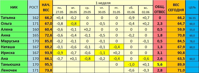 Милости просим сюда с данными за 2 неделю... составляем табличку новую.