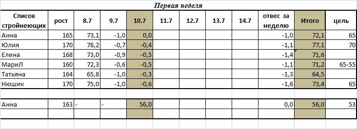 А какие результаты? Или раз в неделю отвесы пишем? Пысы: я начинаю завтра, поэтому интересуюсь:)