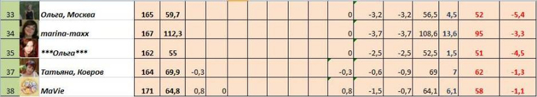 У меня по ходу сломались весы мои - сегодня вечером взвешиваюсь, а они мне показывают 58 кг - собственно мою цель, а с утра я весила 62,5, такого же быть не может, верно? Хоть и очень желанно. Завтра поменяю батарейки - выясню что с ними хоть :)) с весами то.