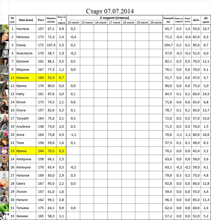 Дневник худеющей:)Что-то нас становится всё меньше=( как печально! Сегодня выложу табличку, где будут отмечены те, кто давно не подает о себе данные и кого я хочу удалить из таблицы. У меня сегодня - 500гр! Иха!=) а у вас как дела?