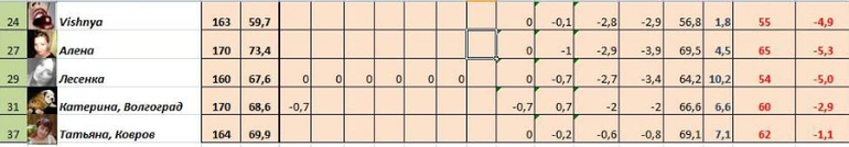 мудрит моя табличка, поставила -0,5 за два дня.А я жду когда перевалю цифру 60 кг