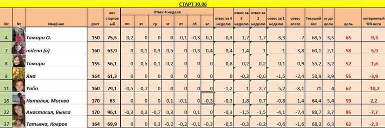 Спасибо тебе большое, ты молодец. Отлично вела табличку, поддерживала и подбадривала, я одна умудрилась из всех выйти на финиш с "+"