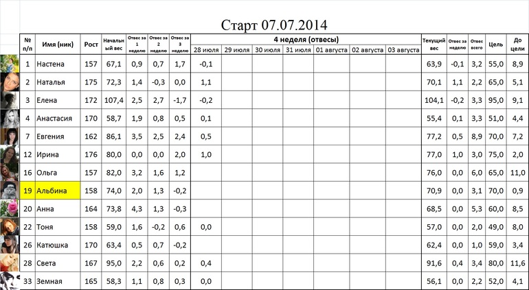 Дневник худеющей:)У нас есть молчуны, сегодня буду удалять из таблички, если не объявитесь!=)