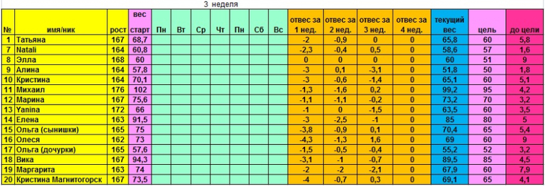 Дневник худеющей:)Всем приветик! Вчера все молодцы отписались! Подводим итоги 3 недельки
