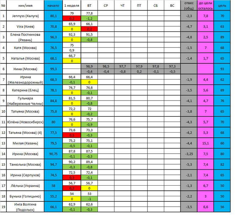 Всем привет! А у меня сегодня минус)) Целых 100 гр отвалилось (ну хоть какое-то движение). Вес 66 ровно.