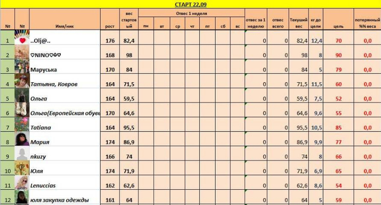Наши отчеты и результаты:)Итак, нас 18 человек, 18 пухляшек желающих похудеть :))
