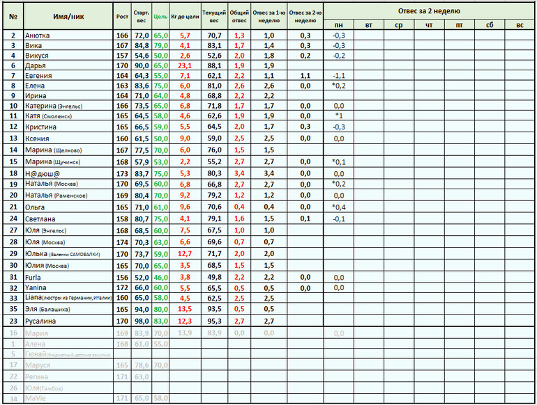 Дневник худеющей:)Всем привет!! Наша табличка заметно обнищала... Ауу, вы где все?