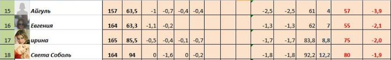Доброе утро всем! Хороших похудательных ввыходных всем)) вечером после рыбы пила вчера как раненная лошадь, ждала привеса, но как-то прокатило, сегодня - 100гр, урра! № 17, вес 83,700, отвес 100гр.
