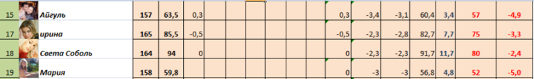 Спасибо. Сегодня с новыми весами утро не задалось,они мне выдалои 57,1!!!! Да это же больше чем то,на что я рассчитывала! Может предыдущие выдавали не правильные данные?так значит и изначальный вес был другой?ну я думаю оставим все так. И так итог-57,1. Привес 0,3(( ну я отбила подачу упражнениями,разозлилась и активно позанималась! А если я злюсь,то лучше худею и вредностно отношусь к порциям. Посмотрим кто кого! Девчонки,всем удачи и отвесиков!