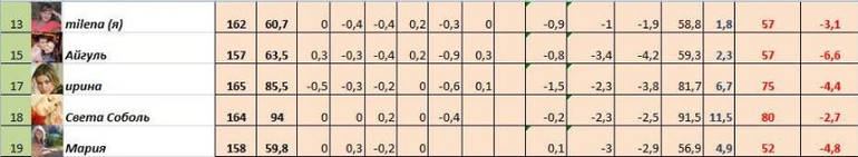 Наши отчеты и результаты:)Итак, девоньки, ровно полпути пройдено!!! Ураааа!!!