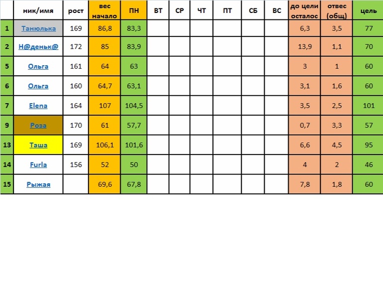 2 место - Танюлька №1 минус 3,5 кг за первую неделю