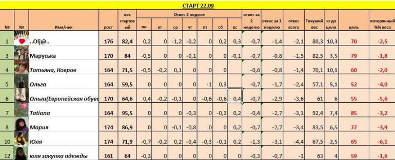 Наши отчеты и результаты:)Девоньки, я не поняла, почти у всех привесы, хм...