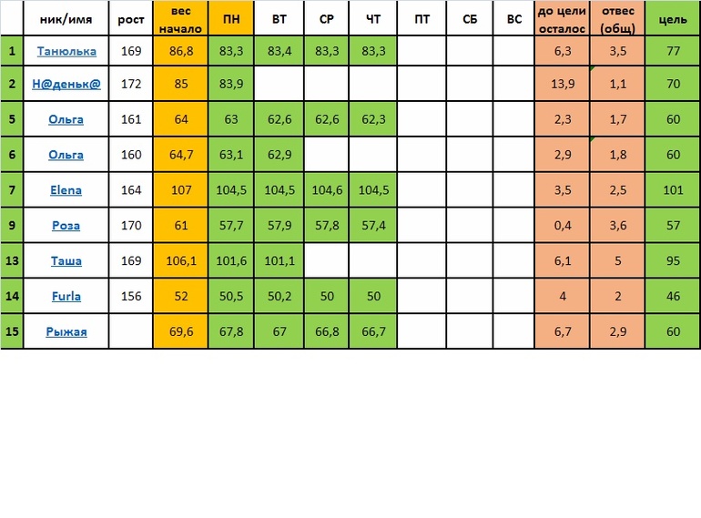 сегодня не взвесилась утром, поэтому днем все так и осталось...мой номер 14 - вес 50кг.