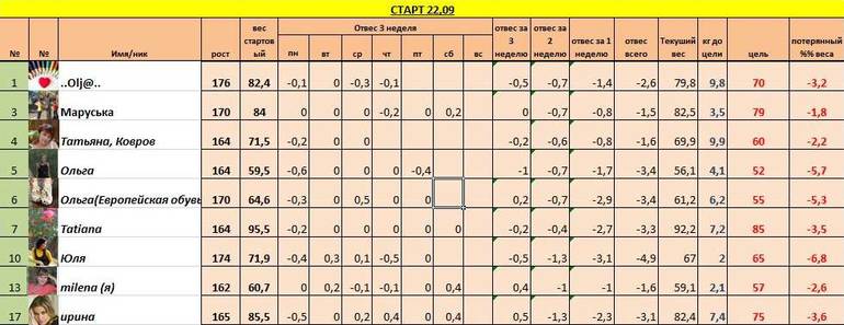 Наши отчеты и результаты:)Итак, последняя неделька нашего круга :))