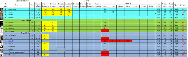 Отмечены красненьким девочки, которые не отчитались. Пока жду их.