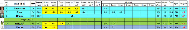 Доброе утро!№22 вес 86,5 (+100)У меня в табличке стоит отвес 2 кг в 4 неделе, а должен в 3-й :))