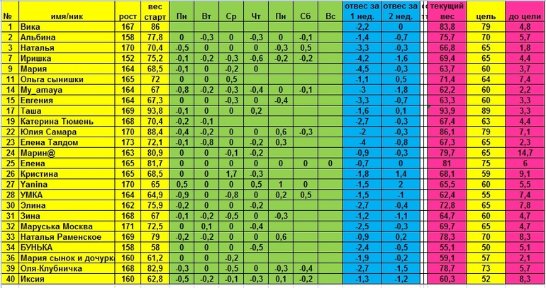 Девушки ау-ау-ау выходные закончились, все в строй)! Всех ждем, мы прошли половину пути, идем дальше! Кто выдержал выходные умнички!!!!